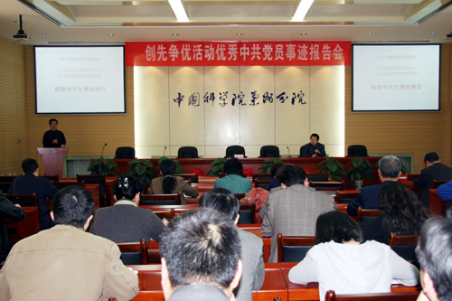 3月份以来,院属兰州、西宁各单位深入推进创先争优活动,加大先进典型事迹的宣传力度,发挥先进人物的示范引领作用,使创先争优活动学有标杆、赶有目标,掀起了树典型、学先进、赶先进的热潮。3月21日、30日,4月1日,西北高原生物研究所、青海盐湖研究所、近代物理研究所、兰州分院机关等分别举办“创先争优活动优秀共产党员事迹报告会”。兰州分院党组书记、创先争优活动领导小组组长谢铭先后为各单位作“追忆感人事迹,传承优秀品德”的主题报告,掀起了向近代物理研究所创始人杨澄中院士学习的热潮。