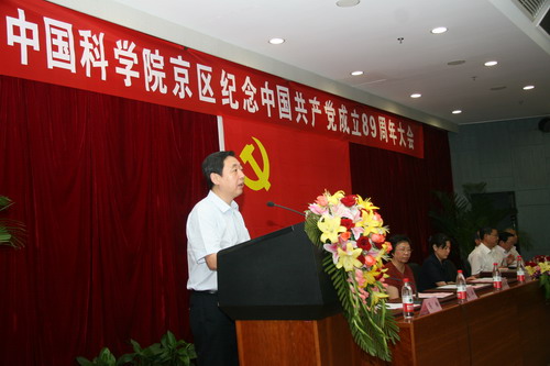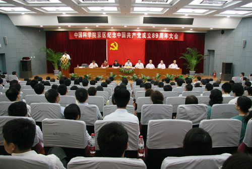 京区党委7月1日在北京召开纪念中国共产党成立89周年大会,进一步推进京区积极开展创先争优活动,并表彰一批中科院京区先进基层党组织、优秀共产党员和优秀党务工作者。中科院党组成员、副秘书长、京区党委书记何岩出席大会并讲话。京区党委常务副书记马扬主持会议,京区党委副书记杨建国宣读表彰决定。中科院京区党委常委、北京分院党组常务副书记项国英,京区党委副书记隋红建,京区党委常委、委员,京区纪委委员,基层单位的党委书记,受表彰的党组织、党员、党务工作者代表,预备党员等300多人参加了纪念大会。