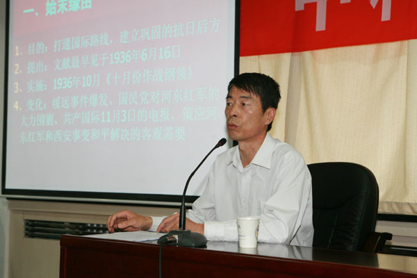 八路军兰州办事处纪念馆馆长,兰州红西路军研究会会长朱永光作《西路军与西路军精神》报告