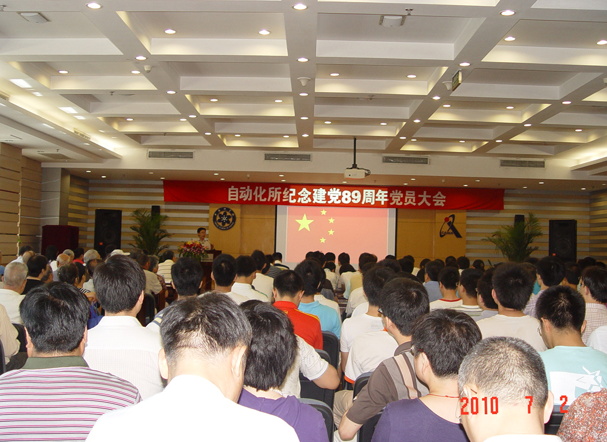 7月2日,为纪念中国共产党成立89周年,以“积极投身创先争优活动”为主题,中科院自动化研究所举行党员大会,研究所党政领导、全体党员、入党积极分子及民主党派和无党派人士200余人参加。大会由所党委委员房自正主持。