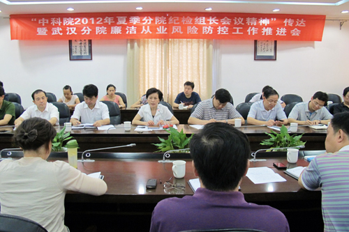 为贯彻落实中科院2012年夏季分院纪检组长会议精神,深入推进廉洁从业风险防控工作,武汉分院于7月17日召开了第二季度纪监审工作会议。武汉地区各单位纪委书记、副书记以及纪监审干部共30余人参加了会议。会议由武汉分院党组书记、副院长、纪检组长陈平平主持。