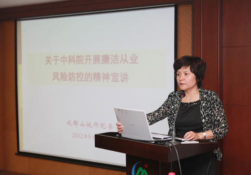 9月18日,在山地所中心组学习会上,中科院水利部成都山地灾害与环境研究所启动了一年一度的党风廉政宣传月活动,党委副书记、纪委书记罗晓梅作了题为《关于中科院开展廉洁从业风险防控的精神宣讲》的报告,所长邓伟、党委书记关晓岗以及中层干部等30余人参加了会议,关晓岗主持会议。