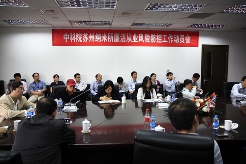 10月18日下午,中科院苏州纳米技术与纳米仿生研究所召开廉洁从业风险防控动员会议,副所长、所纪委书记杨建中同志、各部门负责人和课题组长参加了会议。