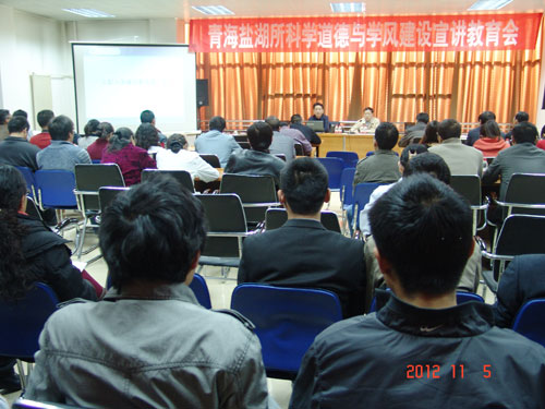兰州分院党组书记、副院长谢铭应邀为青海盐湖研究所作题为“入职入学廉洁教育第一课”报告。所领导和中层干部,科研人员,新入所职工和学生共计七十余人参加了此次报告会,会议由所党委书记胡彦明主持。