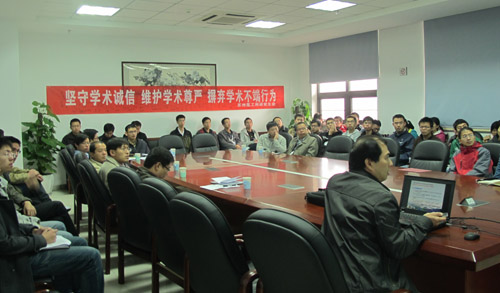 邓强首先对学术道德与学风建设有关情况作了详细介绍,阐述了学术不端行为的定义以及如何避免学术不端行为,强调学术道德与学风建设的重要性,对导师、青年工作者和研究生提出了要求。