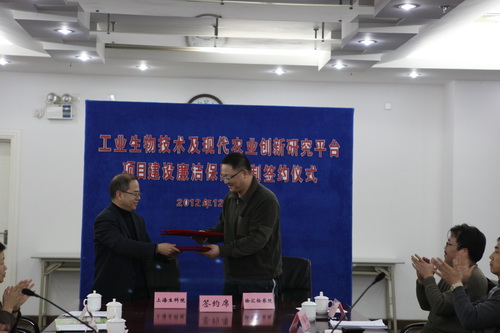 会上宣读了《关于建立工业生物技术及现代农业创新研究平台建设项目廉洁保障机制的决定》,司胜利代表生科院与吴盛共同签署了《决定》文本。
