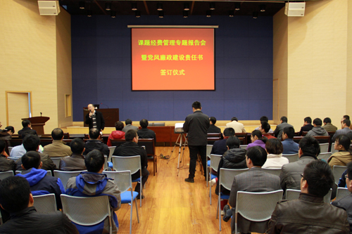 会上,研究所举行了《廉洁自律建设责任书》签订仪式。分管所领导、研究员、课题组负责人、管理和支撑部门负责人分别与所党政主要领导签订了《廉洁自律建设责任书》。