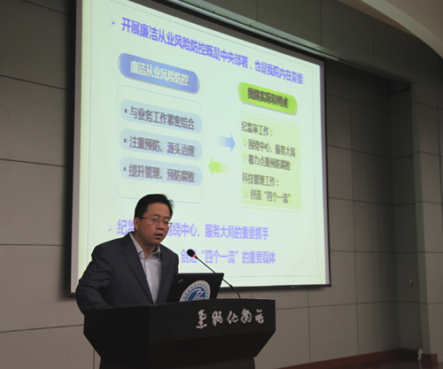 王齐华指出,全面扎实开展廉洁从业风险防控、切实加强重点领域预防和监督、着力加强纪监审干部队伍建设是研究所2013年党风廉政建设三大重点。全体党员干部、全所职工要深刻理解反腐倡廉的重大意义,提高拒腐防变的自律意识;要以廉洁从业风险防控和科研经费收支审计为契机,扎实推进党风廉政体系建设;要将廉洁从业风险防控与经济活动内部控制有机结合并勇于实践,努力提升研究所管理水平。