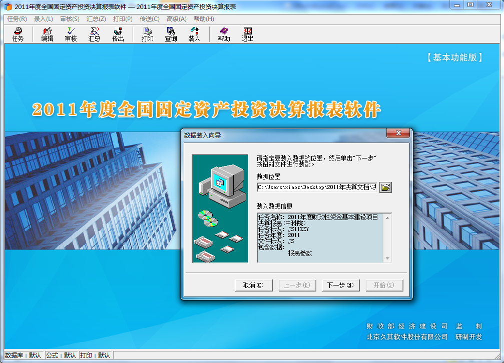 根据 “财政部关于印发2011年度固定资产投资决算报表的通知”(财建〔2011〕901号)精神,结合财政部下发的2011年度全国固定资产投资决算报表软件的内容,制定了2011年度基本建设财务决算报表参数,请按以下步骤进行决算报表软件和参数安装: