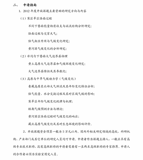中科院寒旱区陆面过程与气候变化重点实验室开放基金申请指南