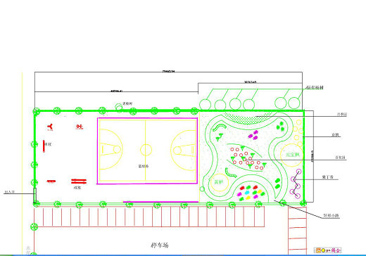 (4) 绿化场地(篮球场西侧)的环形小路和绿化;