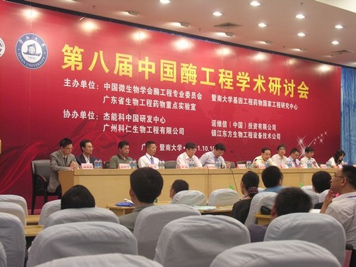 10月10日至13日由中国微生物学会酶工程专业委员会与暨南大学共同主办的“第八届中国酶工程学术研讨会”在广州召开。本次会议还得到了杰能科中国研发中心、诺维信(中国)投资有限公司、广东科仁生物工程有限公司、镇江东方生物工程设备技术公司、岛津公司的大力支持。