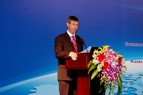 国际合作局副局长曹京华,澳大利亚气候变化与能源部副部长Subho Banerjee博士,国家自然基金委大气科学处处长张朝林,国际气候变化科学大会科学委员会主席符淙斌院士。气候变化已经成为当前全球人类面临的最具挑战的问题,它已经并将深刻影响人类社会生存,环境,经济等方方面面。Subho Banerjee博士指出,澳大利亚政府高度重视气候变化以其影响并积极制定有效应对政策并确保落实,澳大利亚议会于今年制定了关于清洁能源未来利用计划的专项立法,此战略旨在降低碳排放量。
