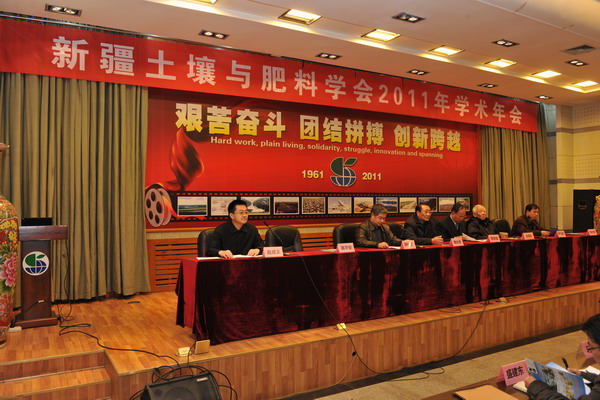 会议开幕式上,新疆土壤与肥料学会理事长田长彦研究员致辞。新疆农业厅副厅长李洪运、自治区科协副主席魏生贵发表重要讲话。会议上还宣读并表彰了2011年度学术年会17名优秀论文获奖者。