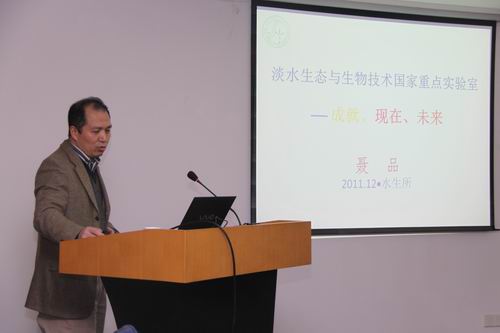 聘任文件,任命聂品研究员为淡水生态与生物技术国家重点实验室(第六届)主任、朱作言院士为实验室学术委员会主任。聂品作了国家重点实验室发展规划的报告。报告中,聂品回顾了淡水生态与生物技术国家重点实验室的辉煌历史,并结合中科院的办院方针以及水生所“一三五”发展规划,提出了该实验室今后的工作任务和战略目标。在自由讨论环节,与会人员纷纷献计献策,共商该实验室未来发展大计。