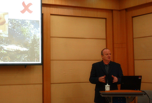 下午,Stuart Bunn教授作题为Environmental flows and river health的报告。详细地介绍了人为活动(建坝等)和全球气候变化对水资源的影响以及造成鱼类多样性衰减,同时,还用模型评估和预测澳大利亚当地流域水流量的变化趋势,以及该研究对于决策者们现实指导意义。该报告使在座的老师和研究生都受益匪浅。