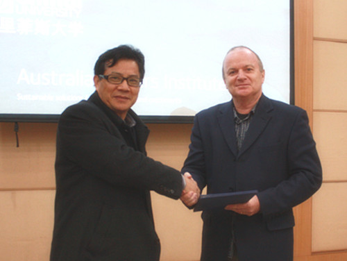 园主任李绍华研究员为Stuart Bunn 教授颁发“中科院外国专家特聘研究员”证书