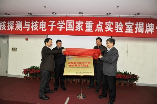 7日上午,国家重点实验室副主任、中国科技大学安琪教授主持了核探测与核电子学国家重点实验室的揭牌仪式。高能所所长、国家重点实验室主任王贻芳研究员致开幕词。科技部周文能处长对重点实验室揭牌表示祝贺,并希望全体成员继续努力,完成好国家重点实验室的建设任务。中国科技大学副校长朱长飞教授表示科大方面对于实验室的建设和发展,将继续给予大力支持,并对重点实验室的发展前景充满期望。随后,王贻芳向大会作了“国家重点实验室建设情况”的报告,汇报了过去一年重点实验室取得的工作成果及重点建设规划。