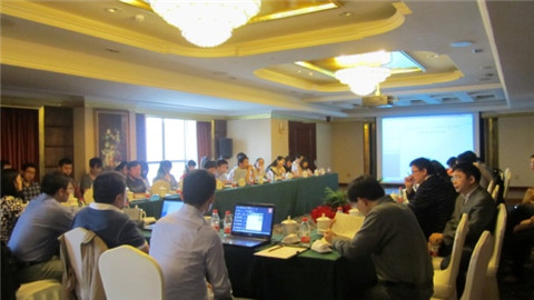 接下来吴关平研究员、刘波研究员、陈后鹏研究员、饶峰副研究员、陈小刚副研究员五位项目分小组组长分别就工艺与模拟组、设计组、材料组、测试组上半年取得成果做了总结汇报,针对GST填充工艺开发、Al-Sb-Te及其他新型相变材料的工程化等进展过程中凸显的各个问题,不同合作单位的成员相互进行了充分交流和探讨。
