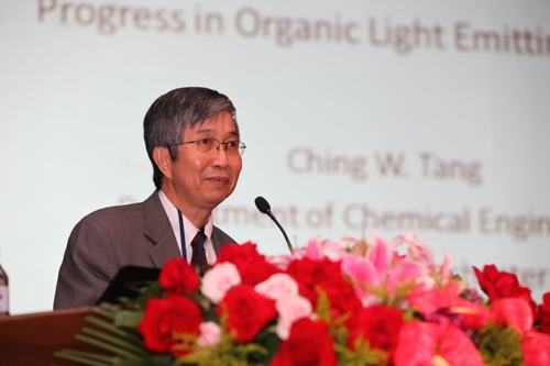 2011年沃尔夫化学奖获得者,美国工程院院士,美国罗彻斯特大学邓青云教授(OLED 发明人)做报告