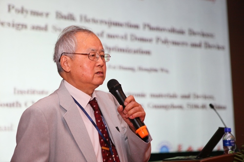 2011年沃尔夫化学奖获得者,美国工程院院士,美国罗彻斯特大学Prof.Ching W. Tang (邓青云教授,OLED 发明人),美国工程院院士,美国阿克隆大学高分子科学与工程学院院长Prof.Stephen Z.D. Cheng(程正迪教授)、 IUPAC前主席、韩国高丽大学Prof.Jung Il Jin(陈政一教授),日本高分子学会前会长、日本早稻田大学Prof.Hiroyuki Nishide(西出宏之教授)和华南理工大学曹镛院士,分别在会上作了题为Progress in Organic Light Emitting Diodes 、Giant Molecules based on Nano-atoms: Size Amphilification,Function Diversification ,and Self-Assembly Manipulation 、First Organic High Temperature Ferromagnetic Compositions-A Scientific lesson Learned from Natural DNA 、A Plastic Rechargeable Battery and Photovoltaic Cell Based on Radical Polymers 和Polymer Bulk Heterojunction Photovoltaic Devices Design and Synthesis of Novel Donor Polymers and Device optimization 的学术报告。