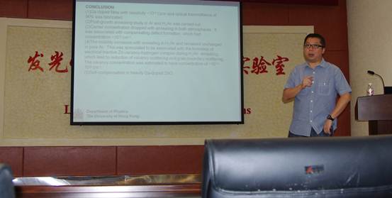 8月21日,香港大学物理系LING Chi-Chung副教授到发光学与应用国家重点实验室进行学术访问。访问期间,LING Chi-Chung副教授做了题为Thermal process induced changes in electrical conductivity in As-doped ZnO and heavily Ga-doped ZnO的报告。