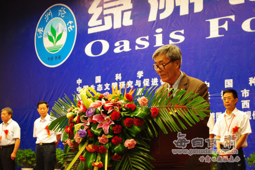 论坛开幕式由中科院兰州分院院长王涛主持,张掖市委书记陈克恭、中科院院士李延栋、国家林业局治沙办副主任许庆分别致辞。中国生态文明研究与促进会常务副会长许光耀发表了讲话。