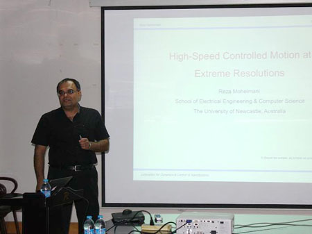 Reza Moheimani教授来所访问期间,做了一场题为High-speed Controlled Motion at Extreme Resolutions 的学术报告。报告以超精确运动控制最新研究进展为主线,以高速原子力显微镜应用为背景,讨论了压电传感器和驱动器的重要作用,提出通过良好机械设计,电子接口高级控制系统的集成来提高它们的性能;并且讨论了其他正在出现的应用如基于微流控系统的on-chip原子力显微镜以及其出现的机遇和挑战。沈阳自动化研究所部分科研人员和研究生参加了此次报告会。报告形式新颖、内容丰富,与会人员被精彩的报告和独到的学术观点所吸引,多名科研人员和研究生与Reza Moheimani教授进行了热烈的交流和讨论。