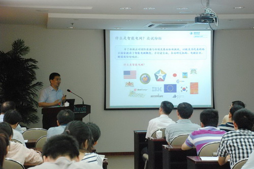 阮前途教授在电力系统与网络信息系统等方面具有深厚的造诣,近年来重点开展智能电网建设方面的研究与开发,是我国钠硫电池储能技术自主开发的主要发起人之一。他的报告重点论述了智能电网的构架及其与新能源以及与储能电池的关系,展望了上海坚强的智能电网的规划前景。