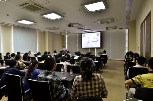 Henry A. Lester教授研究长期在尼古丁影响下大脑会发生的变化,Lester教授的研究团队认为尼古丁的脂溶性高,可通过细胞膜进入胞浆,和胞浆中内质网上的未成熟受体结合,产生chaperoning、matchmaking、escorting和abduction等多种效应。这种由内而外(inside-out)的方式与传统意义上配体与膜受体结合后通过信号通路产生作用的经典模式(outside-in)不同,为药物所师生进一步理解配体-受体作用方式提供了新的思路。提问环节的活跃气氛也为Lester教授留下了深刻的印象。