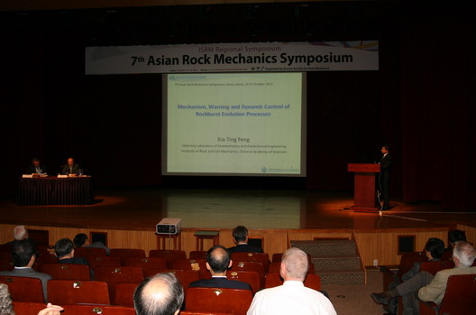 10月14日至18日,“第七届亚洲岩石力学大会ARMS7”在韩国首尔COEX会议中心举行。国际岩石力学学会主席、中科院武汉岩土力学研究所研究员、岩土力学与工程国家重点实验室主任冯夏庭应邀出席了会议。此次大会由国际岩石力学学会韩国国家小组承办,会议的主题是岩石工程的现在与未来,出席大会的专家、学者来自中国、韩国、日本、新加坡、印度、伊朗、以色列、美国、英国、德国、瑞典、土耳其、南非、澳大利亚、葡萄牙、印度尼西亚、越南等十多个国家和地区。