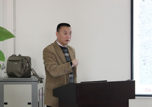 报告中,高明远研究员介绍了其小组在无机纳米粒子的合成与生物应用方面取得的进展。高明远研究员主要介绍了以下三方面的工作:其一,亲水性磁性纳米材料的直接合成,研究了其中的反应机制,并介绍了其在生物成像中的应用;其二,新型NaGdF4纳米颗粒的制备,并将其应用于磁共振/上装换的双模成像;其三,多种Janus纳米粒子的制备,包括Cu2S-InS3半导体的合成及其形成机制,火焰法制备的Fe2O3-SiO2纳米粒子的制备等。