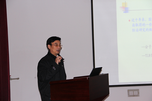 蔡建明教授联系核辐射突发事件危险性日益增加的社会背景,结合核电站爆炸、核恐怖事件等时事讲解,阐明了研究辐射损伤防治措施的意义。他结合分子氢对人体无害无毒等特性,讲解了分子氢对DNA和细胞、造血组织、肠道组织、肝组织以及整体动物辐射损伤的保护作用及消除辐射自由基、影响凋亡蛋白、氧化代谢物减少等作用机制。结合分子氢的辐射预防研究,蔡建明教授深入探讨了TLRS在辐射损伤修复中的作用。他回顾了2008年发现TLR5激动剂具有减轻辐射损伤的作用这一国际研究突破,结合TLRS家族成员在结构、信号传导通路和生物活性等方面有相似之处的观点,阐述了TLR9在辐射损伤治疗中的作用和机制。
