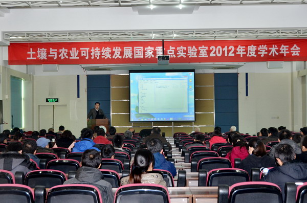 实验室常务副主任张甘霖研究员代表实验室作2012年度工作总结报告。他概括性介绍了实验室的定位及发展目标、项目承担、合作交流、运行管理、研究进展等方面的情况。在思考和部署2013年的工作中,张甘霖表示实验室将继续凝练科学问题,加强系统性的科研工作。