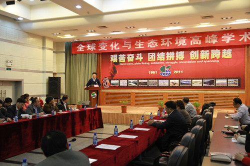 院士傅伯杰,北京师范大学常务副校长史培军教授,中科院寒区旱区环境与工程研究所丁永建研究员,中科院地理科学与资源研究所邵明安研究员等,分别就气候变化科学新进展、生态系统服务前沿研究方向、气候变化风险及综合防范、冰冻圈变化的水文生态效应研究、黄土高原土壤干层研究做了专题报告。