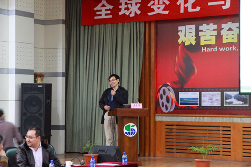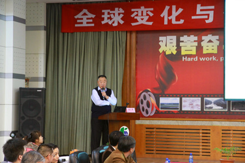 秦大河院士解读了关于气候变化科学的系列重大科学问题,阐释了IPCC第四次评估报告主要结论以及IPCC第五次评估报告重要进展。他指出:“一百年来,世界地表平均温度以每年0.70至0.75摄氏度的速度迅疾上涨”,严峻的现况引发了现场所有人对于环境问题的思考。他以雾霾天气的加剧、温室气体的排放、能源结构不合理等环境问题为例,对如何提高能源效率?如何应对气候变化?如何保护环境、保护气候?等科学问题进行了解析。