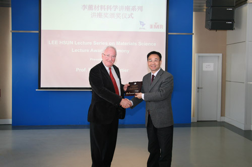 Richard A. Portier教授是国际合金材料及电子显微学领域著名的科学家,主要研究领域为先进显微表征技术与理论、准晶、固态相变、先进合金材料等,在汇聚束衍射、动力学理论、重构型及位移型相变、复杂合金显微组织演化行为等领域做出了显著的贡献。此次来访,Portier教授为金属所的科研人员及研究生作了题目为Unexpected Constrained Twin Hierarchy in Ru-based High Temperature Shape Memory Alloys Martensite 的学术报告。报告前,金属所所长杨锐为Portier教授颁发了“李薰讲座奖”奖牌。报告结束后,Portier教授与金属所科研人员就双方感兴趣的问题进行了深入交流。Portier教授与金属所有着良好的合作关系,特别是与工程合金研究部的相关课题组已合作发表多篇论文。此次来访期间,Portier教授与科研人员进行了广泛的学术交流,总结了双方之前的合作,并商定了未来合作计划。