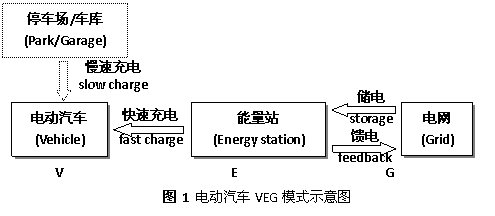 不同于美国Amory B. Lovins和Willett Kempton在上世纪末提出的V2G模式(Vehicle to Grid,简称V2G),在VEG模式中,电动汽车充电方式由用户自己选择,可以在能量站快充,也可以在停车场或家庭车库进行慢充;能量站安装有低成本长寿命的MW级储能电池,能够从电网充电储存电量后,给电动汽车快速充电;同时,能量站能够与电网互动,用于电力调峰或调频(图1)。其中,开发低成本长寿命的新型储能电池和可以安全快速充电的新型动力电池是实现VEG模式的两大技术关键,电工所储能技术研究组正在进行相关技术研发工作,目前已经建立新型储能电池技术小型示范系统,并申请多项技术发明专利。