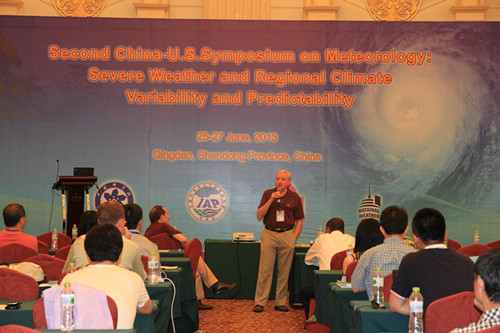 由中科院大气物理研究所所长王会军研究员和美国俄克拉荷马大学校长美国参议员David L.Boren教授共同发起,由大气物理研究所和俄克拉荷马大学中尺度气象研究所(CIMMS) 联合举办的第二届中美气象研讨会 (Second China-U.S. Symposium on Meteorology: Severe Weather and Regional Climate, Variability and Predictability) 于6月25日至27日在青岛召开,本次会议旨在交流探讨两国在极端天气和区域气候变率及其可预测性方面的研究成果并确定和分析未来十年全球天气和气候所面临的最严峻挑战。