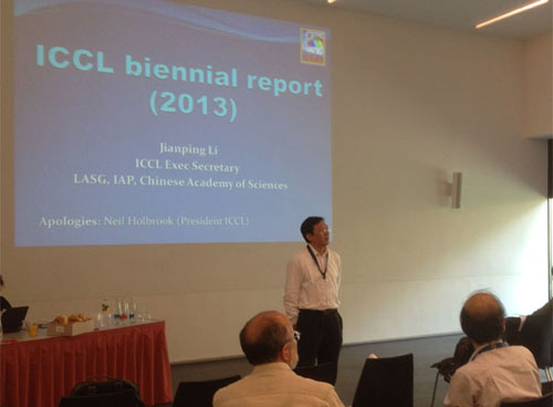 在IAMAS执行局会议上,吴国雄院士被任命为IAMAS提名委员会主席,负责2015年IAMAS换届选举工作。李建平研究员代表ICCL汇报了ICCL2011-2013年的工作,并主持ICCL的行政会议,重点讨论扩大ICCL影响力以及新成员的招募计划。受IAMAS中国国家委员会主席吕达仁院士委托,李建平研究员还在IAMAS执行局会议上汇报了中国IAMAS国家委员会的工作情况及中国的大气科学研究。2012-2013年,大气所承办了IAMAS下属国际动力气象委员会和国际气候委员会发起的两个国际会议,李建平研究员分别担任两个会议的共同主席。由IAMAS中国国家委员会和大气所共同主办的《大气科学进展》2012年影响因子显著提高至1.338。IAMAS执行局对中国科学家在IAMAS各项活动中积极、细致、认真的工作以及对国际大气科学交流的贡献表示高度赞赏,也对《大气科学进展》的进步表示祝贺。