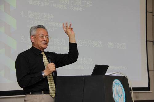 萧锡延为水生所青年科技工作者作了题为《一位资深研究者对年轻朋友的诤言》的报告。他回顾了自己一生投身科研的历程,并结合了自身的经历对青年科技工作者的科研和生活提出了13项建议:1)有健康的身体,才能克服困难;2)树立特色,作出引领性的工作;3)要有耐性,做好扎根工作;4)要能坚持,“行百里者半九十”;5)有好的语言能力,才能充分表达,做好沟通;6)忠于数据,凭证据说话,要有逻辑观念;7)要有开阔的视野,多方涉猎其它学门的知识;8)培养一些生活上的兴趣,提高生活品味;9)工作要有优先级,并养成守时的习惯;10)讲求团队合作;11)要有正义感、骨气、正确的价值观及爱心;12)家人的支持以及要有好的朋友;13)要有乐天知命的豁达,甘于两袖清风。萧教授的风趣演讲使会场上笑声连连。