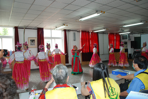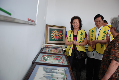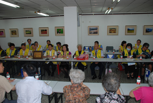 随后,在友好欢悦的气氛中,围绕老年健康和如何养老问题,双方进行了交流,互赠了纪念品;老年大学声乐班为来访者表演了小合唱《台湾岛》;舞蹈班表演了热情洋溢的民族舞蹈;绘画教师梁燕生现场作画,赠送林献忠团长,最后双方合影留念。