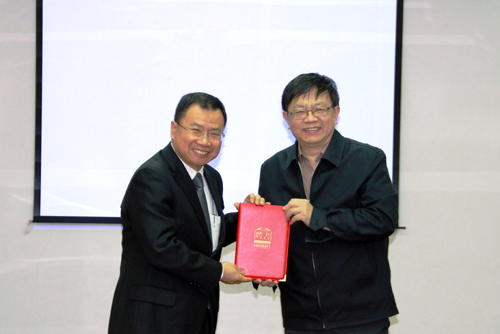 所长赵进东院士为杨磊教授颁发了客座研究员聘书,这也是水生所首次聘任台湾专家为客座研究员。受聘仪式后,杨磊教授为相关学科组的研究生和科研人员作了题为《人工湿地的减碳效应》的学术报告,并介绍了中山大学环境与工程方面的科研教学情况,与水生所科研人员和研究生就进一步推进双方合作和交流进行了座谈。