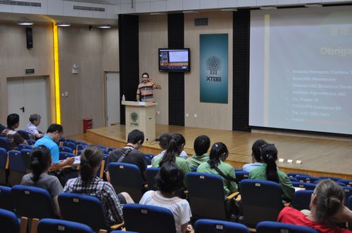 Tombolato博士作了题为Ornamental Potential of Brazilian Tropical Native Species的学术报告。巴西丰富的热带植物资源、巴西圣保罗州农艺研究所研发的热带观赏植物等精彩内容,吸引了众多听众。Tombolato博士还参观了版纳植物园的活植物收集区、博物馆、科研中心等科研科普设施。