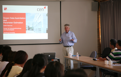 Detlef Stammer教授与中科院海洋环流与波动重点实验室科研人员进行了学术交流,作了题为Data Assimilation and Parameter Estimation的报告,详细介绍了数据同化原理和国际前沿的GECCO(German version of Estimating the Circulation and Climate of the Ocean)四维变分/伴随同化系统在计算海洋参数方面中的应用,展示了相关研究成果。