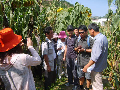 在安塞站科技人员陪同下,代表团成员参观了山地试验场的蒸渗仪观测系统、农田综合观测系统以及坡地土壤侵蚀规律定位试验小区、能源植物柳枝稷栽培与生理、水土保持耕作与养分流失、林草植被水土保持效益等试验设施,听取了有关试验研究的详细介绍。另外,参观了川地试验场的农田综合观测场、农田水肥耦合与水量平衡定位试验小区、气象观测系统、牧草引种、人工降雨模拟小区等设施,了解了相关试验过程。代表团成员还与安塞站科技人员就相关科研进展和成果、示范和推广等方面内容进行了交流。