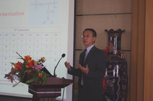 访问期间,朱晓夏教授分别作了题为Biomedical Polymers的专题报告、How to write scientific papers and give presentations, Amphiphilic polymers: Design, synthesis and applications等有关高分子材料在医用和环境领域应用的系列报告,报告分别介绍了生物医用高分子材料(包括高分子水凝胶、高吸水性树脂、胆酸修饰型高分子等)的设计、制备及其在人工关节、心脏瓣膜、个人卫生、牙齿修复、隐形眼镜等领域的应用情况,以及他的研究小组在制备双亲性高分子材料及其在医用和环境治理等方面的应用研究进展等。