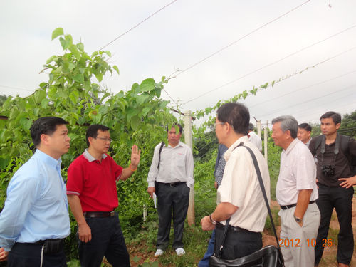 10月25日,老挝国家农林部部长助理、农业推广与合作司副主任Kykeo SINGNAVONG一行6人在云南物产进出口集团股份有限公司董事长兼总经理吴建辉等陪同下,专程到中科院西双版纳热带植物园考察星油藤(Plukenetia volubilis)产业发展与合作事宜。老挝客人实地考察了东区星油藤高产栽培种植基地并举行了座谈。