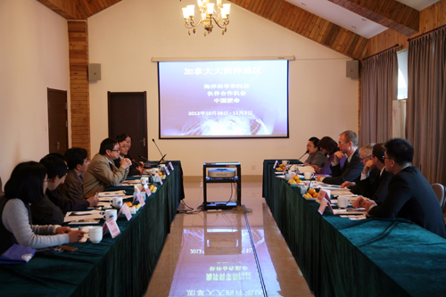 加拿大外交和国际贸易部海洋科技产业全球业务组长Jane Rutherford女士,加拿大大西洋地区经济发展署(ACOA)商业发展投资总监Michel Melanson先生,海洋推展公司执行董事、前任纽芬兰纪念大学海洋学院校长兼CEOLeslie O’Reilly先生,加拿大驻山东省商务处和海洋所国际合作办公室等相关人员参加了座谈。