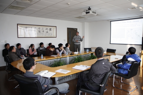 Alfons van Blaaderen教授是3D实体成像定量分析的先驱,主要从事胶体颗粒自组装及空间实体成像方面的工作。报告中,他与大家分享了利用外加电场控制胶体粒子自组装方面的研究经验和成果。其相关研究成果已发表在Science、Nature等国际著名刊物。报告后,Alfons van Blaaderen教授还就电子油墨、电流变流体和光子晶体等方面的工作与科研人员开展了广泛交流和讨论。